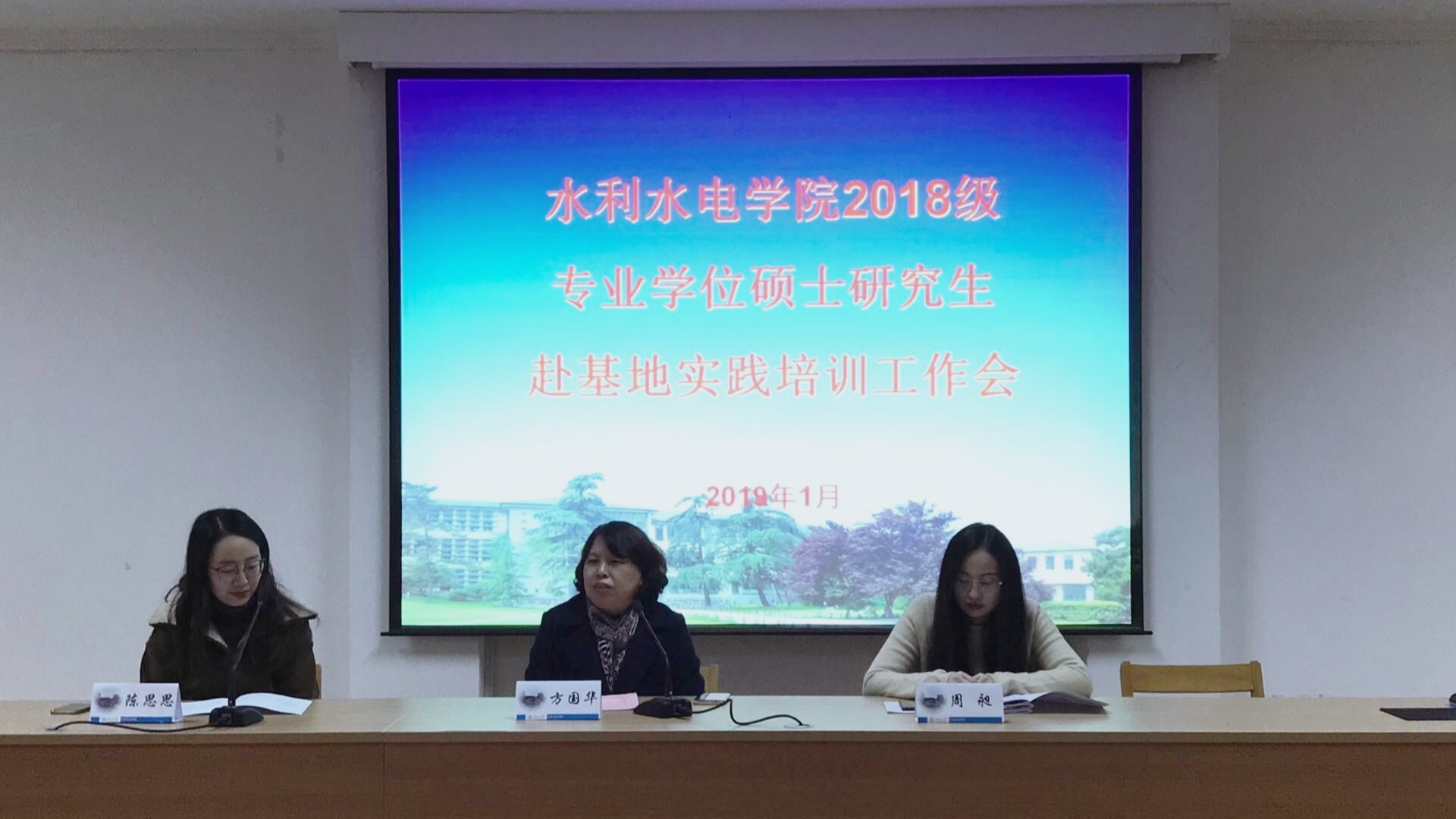 1月11日,亚洲情色 召开了“2018级专业学位硕士研究生赴基地实践培训工作会”,学院方国华副院长、教学秘书周昶老师、研究生辅导员陈思思老师以及18级全体专业硕士研究生参加了会议。