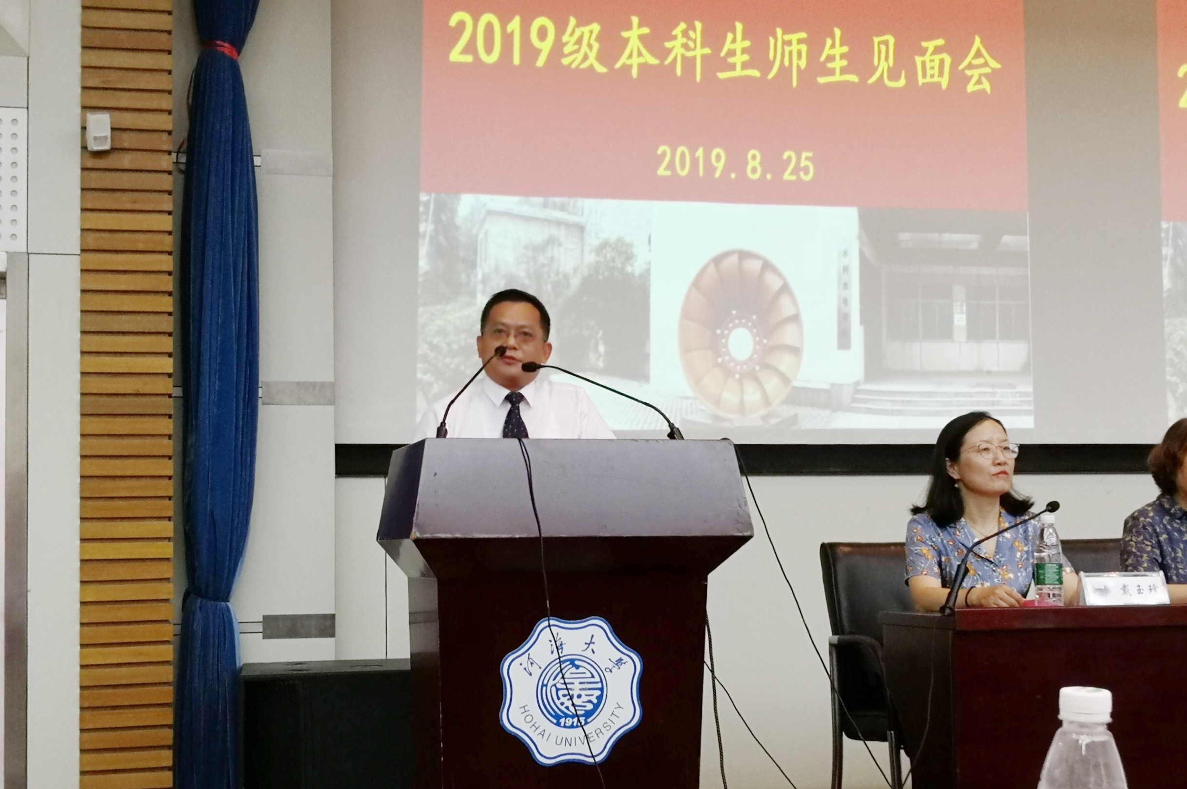 顾冲时院长在致辞和开学第一讲中,代表全院师生员工向2019级新同学表示热烈的欢迎和衷心的祝贺。他从学院历史、师资队伍、学科设置、机构设置、重要科研成果和人才培养及就业六个方面,介绍了学院丰硕的办学成果、雄厚的科研实力和优质的校友资源,引用优秀校友的经历剖析本科生发展于就业的深刻影响,他要求同学们应以远大理想确立人生航向,以高尚品德践行水利精神,以过硬本领担当时代责任,以青春之我、奋斗之我去勇敢追逐心中五彩斑斓的梦想。