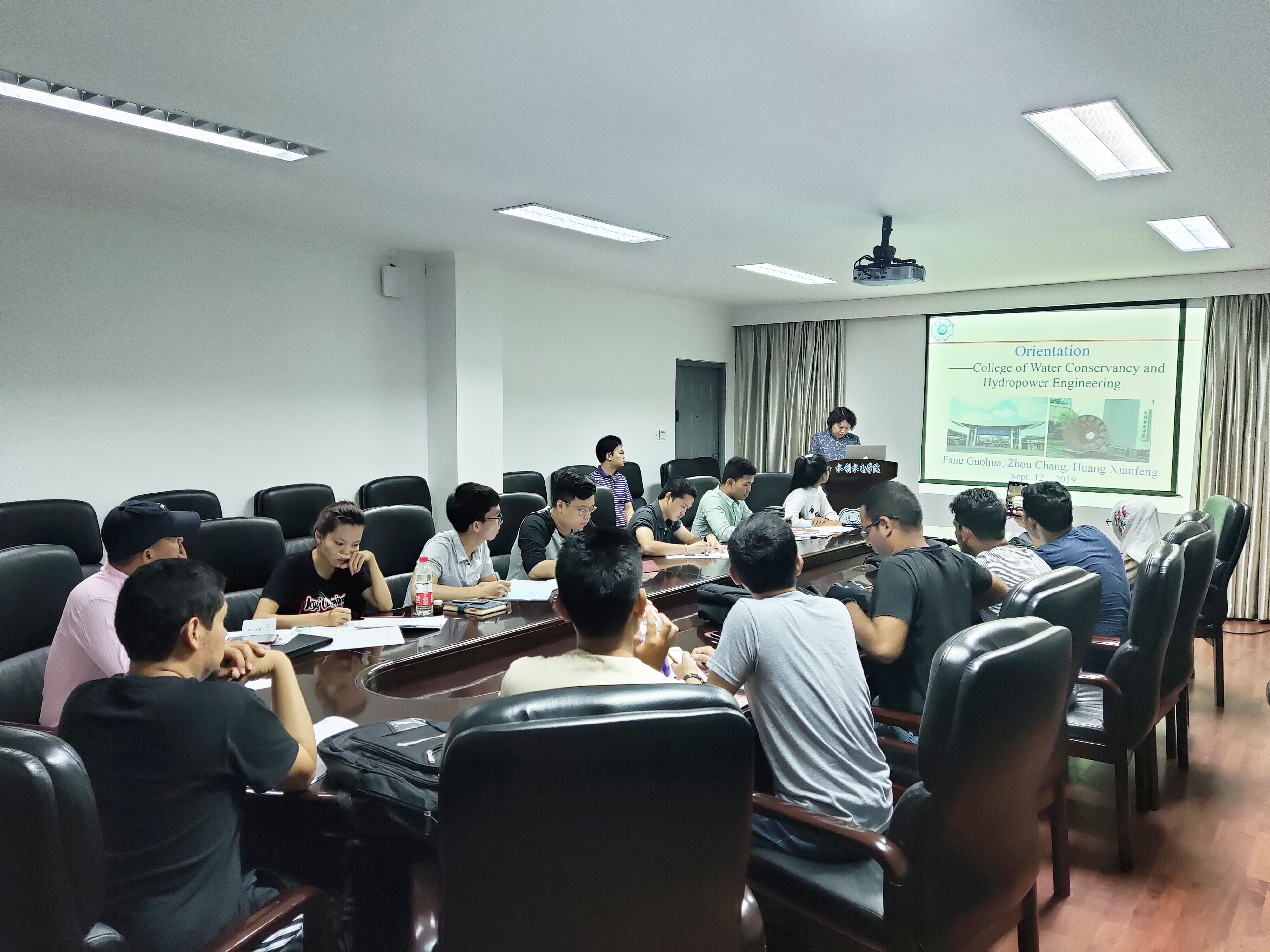 9月12日上午,亚洲情色 在水电馆420会议室举行了2019级留学研究生新生入学教育会。学院副院长方国华教授首先致辞,向各位留学生进入亚洲情色 开始研究生阶段的学习表示祝贺和欢迎,希望留学生新同学热爱本专业,加强专业知识学习,逐渐从知识的积累者变成知识的运用者和创造者。黄显峰副教授从学院的学科概况、人才培养、国际合作等几方面为留学生们做了详尽的介绍。研究生教学秘书周昶老师就同学们关心的课程学习、导师安排等事宜做了解答。2019级留学研究生入学教育会圆满结束。