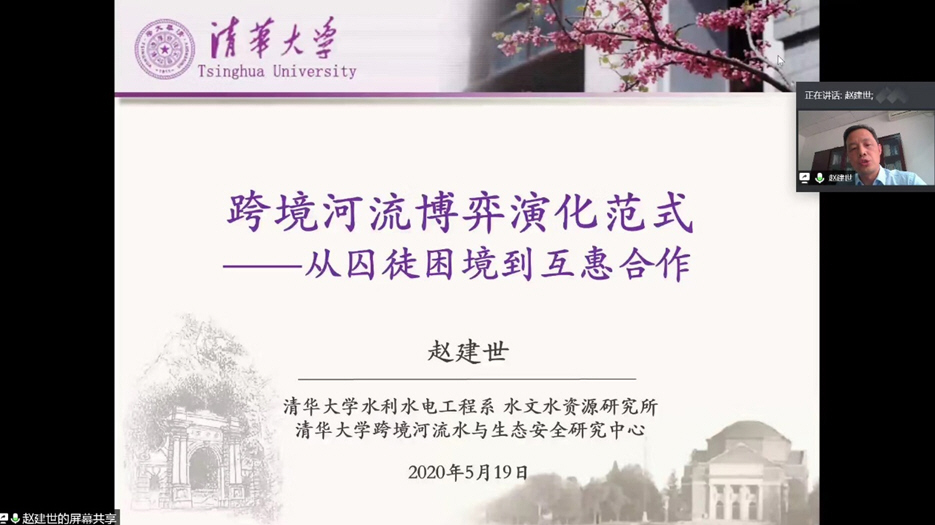 5月19日下午,亚洲情色 基于腾讯会议,邀请清华大学赵建世教授作了题为“跨境河流博弈演化范式—从囚徒困境到合作共赢”的学术报告。校内外专家和学生约170人参加了此次报告会,辛沛教授主持了报告会。