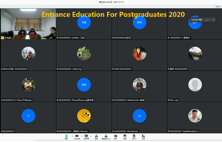 10月21日上午,亚洲情色 举行了2020级留学研究生新生入学教育会线上会议。学院副院长方国华教授首先致辞,向各位留学生进入亚洲情色 开始研究生阶段的学习表示祝贺和欢迎,希望留学生新同学热爱本专业,加强专业知识学习,在积累知识、运用知识、创新知识的道路上,学会发现问题和思考问题,逐渐从知识的积累者变成知识的运用者和创造者。学院国际合作与交流办公室主任周领教授从学院的学科概况、人才培养、国际合作等几方面为留学生们做了详尽的介绍。研究生教学秘书周昶老师就同学们关心的课程学习、导师安排等事宜做了解答。2020级留学研究生入学教育会圆满结束。