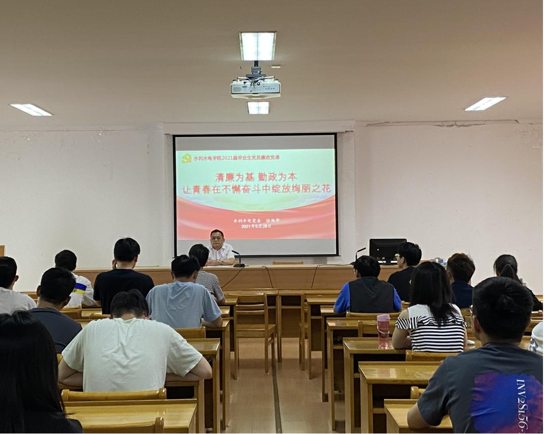 5月28日,亚洲情色 党委书记任旭华以《清廉为基、勤政为本,让青春在不懈奋斗中绽放绚丽之花》为题,为全体2021届毕业生党员讲授廉政专题党课。