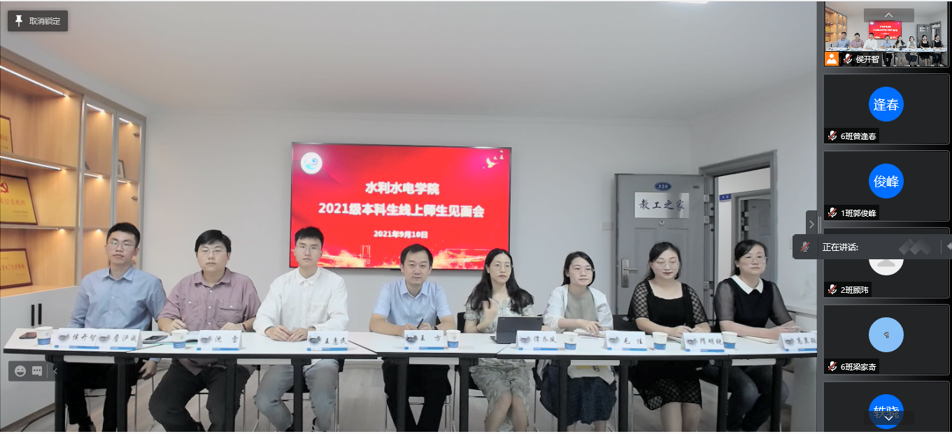 在2021级研究生新生见面会上,学院党委副书记王方、学院各研究所教师代表、学院研究生辅导员赵志涵及研究生会和各专业研究生代表出席会议,2021级全体研究生新生参会,研究生辅导员赵志涵主持会议。王方副书记强调,研究生阶段要严格要求自己,不断提高思想素质和科研素质能力,树立社会责任心与历史使命感,为水利事业发展贡献青春力量。在学科专业教育中,各系所教师代表就学科特色、师资力量、研究方向、科研条件和就业去向等方面介绍。辅导员召开2021级研究生年级大会。