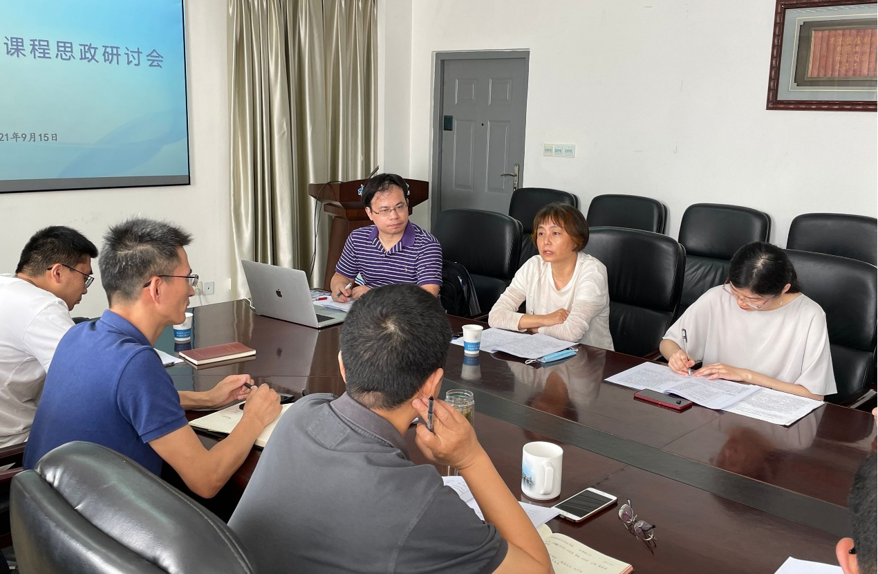 王建副院长全面介绍了学院本科课程思政建设情况,交流了水工专业培养方案、教学大纲、课程教材、课堂教学等方面融入思政元素的举措和取得的成效。“水工建筑物”国家级课程思政示范课程负责人刘晓青老师介绍了水工建筑物课程思政的建设经验和心得体会,建议进一步深化以“专业主干课群为辐射带动、专业教师思政课教师主体协同、专业课思政课互为促进”的亚洲情色 课程思政体系的建设和平台搭建。马克思主义学院陈滔娜老师、王莹老师指出专业课程是课程思政建设的基本载体,要系统梳理专业课教学实质性内容,深入挖掘课程思政元素,有机融入课程教学,达到思政育人效果。校教学督导顾圣平老师提出进一步拓展课程思政内涵,并在课程教学内容中巧妙、自然地融入思政元素,实现价值引领、知识传播、能力养成的有机统一。本科生辅导员姜帆老师也从学生角度出发,提出与时事相结合的建议,增强课程思政时代感并引发学生的情感共鸣。