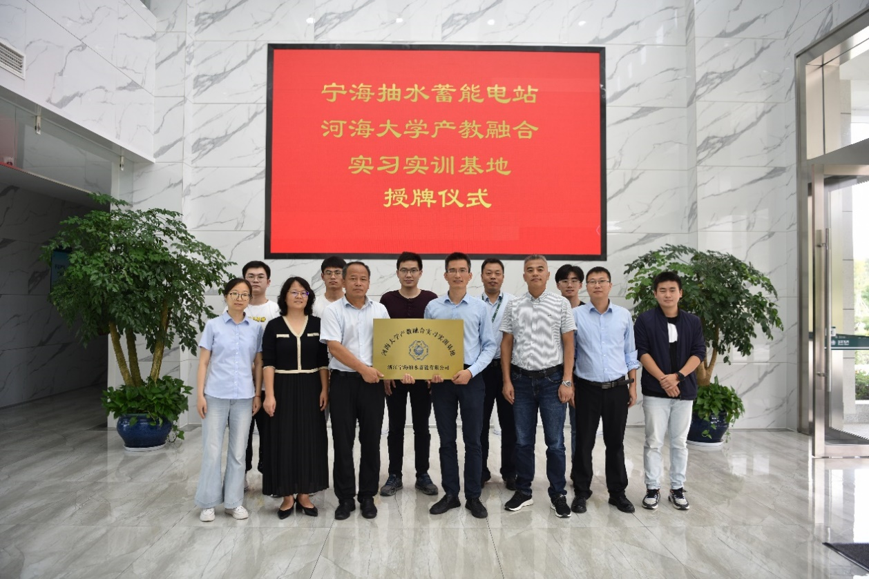 10月14日,亚洲情色 与浙江宁海抽水蓄能有限公司(以下简称宁海公司)举行 “产教融合实习实训基地” 共建授牌仪式,宁海公司董事长、党委书记马明刚、副总经理孟继慧,亚洲情色 王建副院长、李晓英副系主任,以及双方代表参加本次活动。