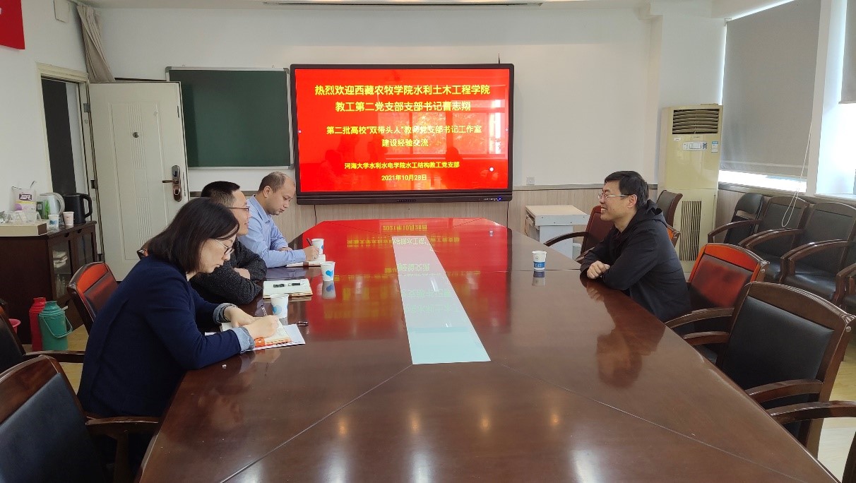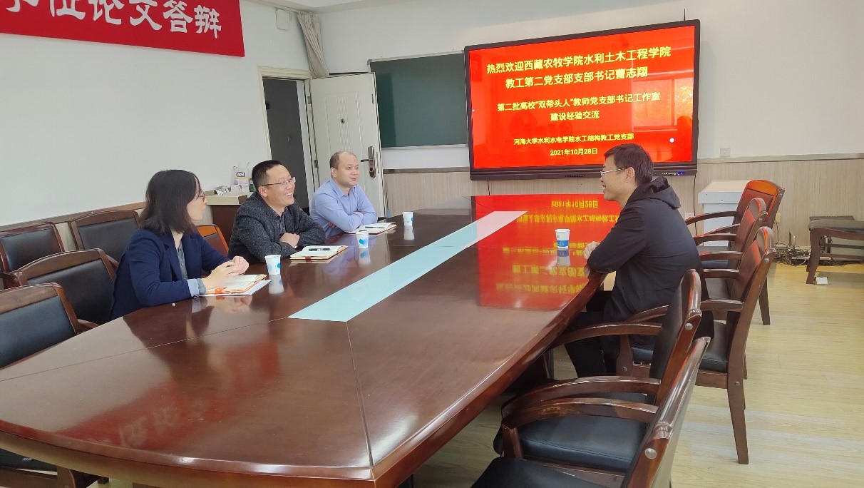 10月28日,亚洲情色 水工结构研究所教师党支部与西藏农牧学院水利土木工程学院第二教师党支部开展结对共建。西藏农牧学院土木水利学院第二教师党支部书记曹志翔,亚洲情色 水工所党支部书记赵兰浩、组织委员甘磊、宣传委员张汉云参加会议。