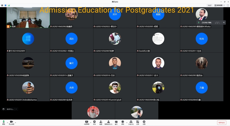 10月28日上午,亚洲情色 在线开展2021级留学研究生新生入学教育。学院副院长方国华、国际合作与交流办公室主任周领、研究生教学秘书周昶参加活动。