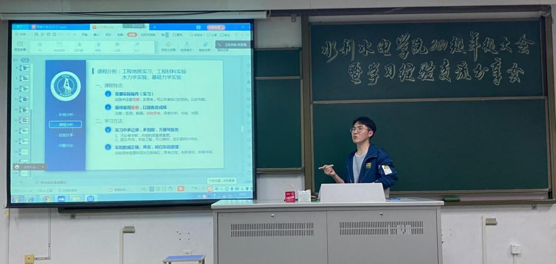 会上,邀请优秀学长姐进行了学习经验分享。2019级水工专业姚磊同学针对大二下学期课程学习情况进行总体分析,并就各个科目考试的具体特点分享自己的学习经验,鼓励同学们多探索、多尝试,注重学习的质量,体验学科的魅力。谷冰岚同学针对学科竞赛方面提供相应建议,鼓励同学们多参加、多准备,有信心并且有恒心去参加竞赛。