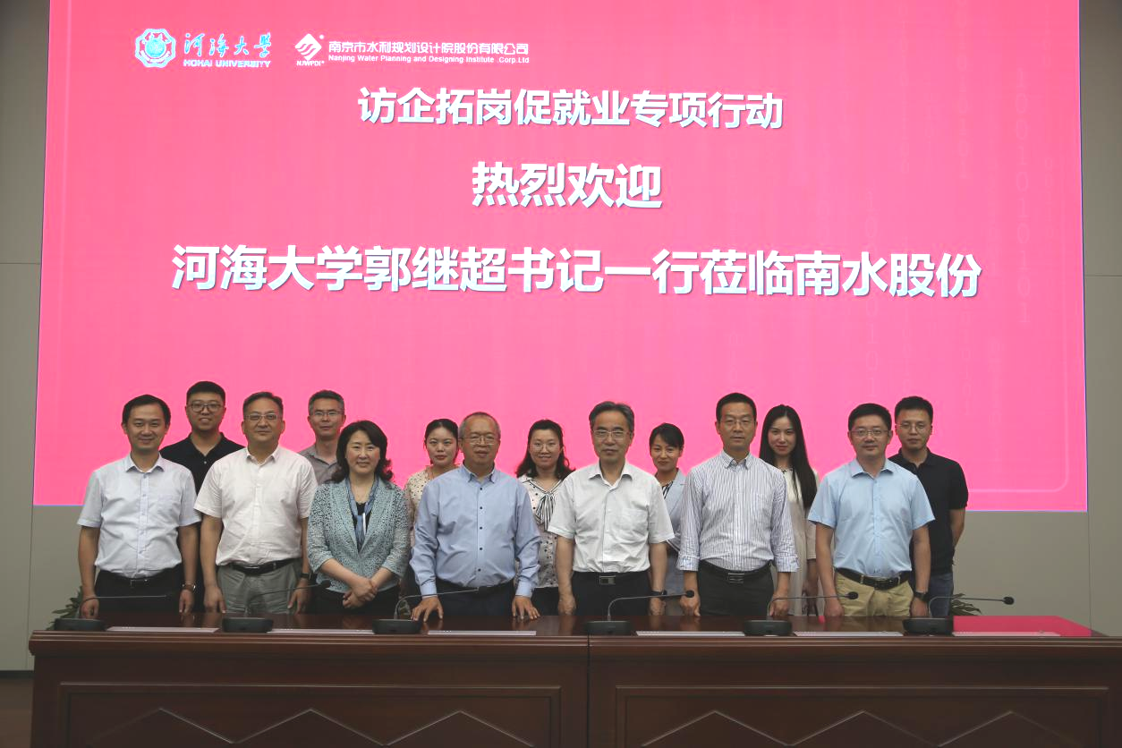5月24日,校党委副书记郭继超,亚洲情色 党委书记娄健,院长王媛,党委副书记王方,校学生处副处长、就业指导中心主任赵海伟及相关工作人员、水电院辅导员前往南京市水利规划设计院股份有限公司开展访企拓岗专项调研活动。南京市水利规划设计院董事长徐惠民,总经理陈晓静,分公司副总经理黄天增,人力资源部主任李岚及相关部门负责人出席活动。校企双方围绕全面深化合作、学生就业、全方位产学研探索等方面进行洽谈交流。