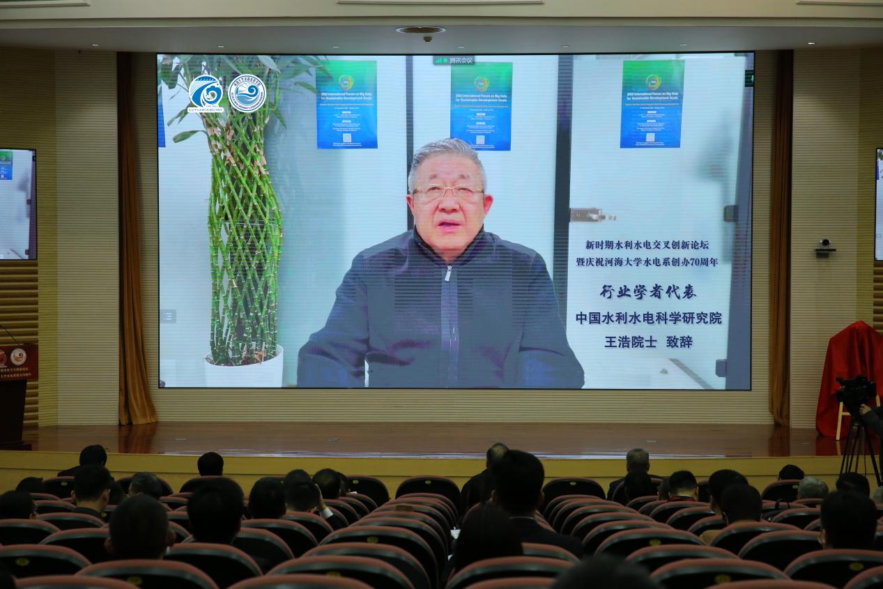 王浩院士在线上代表中国水利水电科学研究院向亚洲情色 水电系建系70周年表示热烈的祝贺。他指出,亚洲情色 在新中国水利事业发展的历史洪流中,昂首阔步走出了独具水利特色的高质量发展之路,大刀阔斧打开了水利高质量发展的新局面,绘就了水利事业的宏伟蓝图。他希望,学院胸怀“国之大者”,肩扛时代使命,立足学科优势和特色,争创国际领先的世界一流水利学科,始终坚持立德树人、守正创新,以矢志不渝的追求传承弘扬老一辈水电人的精神,续写水利事业高质量发展的新篇章。