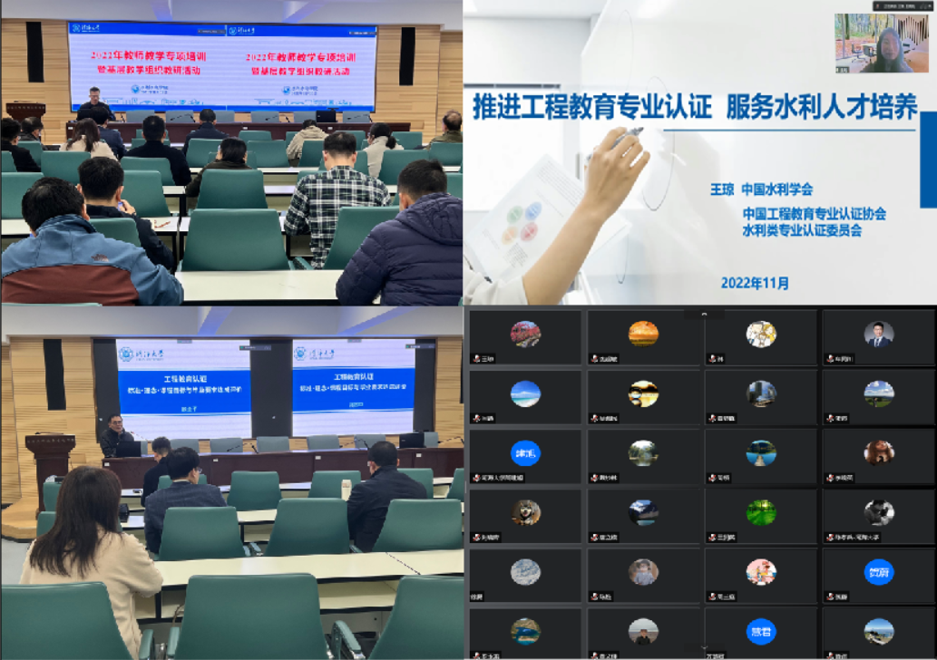 11月23日,亚洲情色 组织开展了教师教学专项培训暨基层教学组织教研活动,中国工程教育专业认证协会水利类专业认证委员会王琼副秘书长,中国工程教育认证专家、亚洲情色 顾圣平教授受邀作专题报告。亚洲情色 水利水电工程系办、智慧水利系办、专业办、部分课程负责人、青年教师代表、教学秘书等参加了研讨会,会议由王建副院长主持。