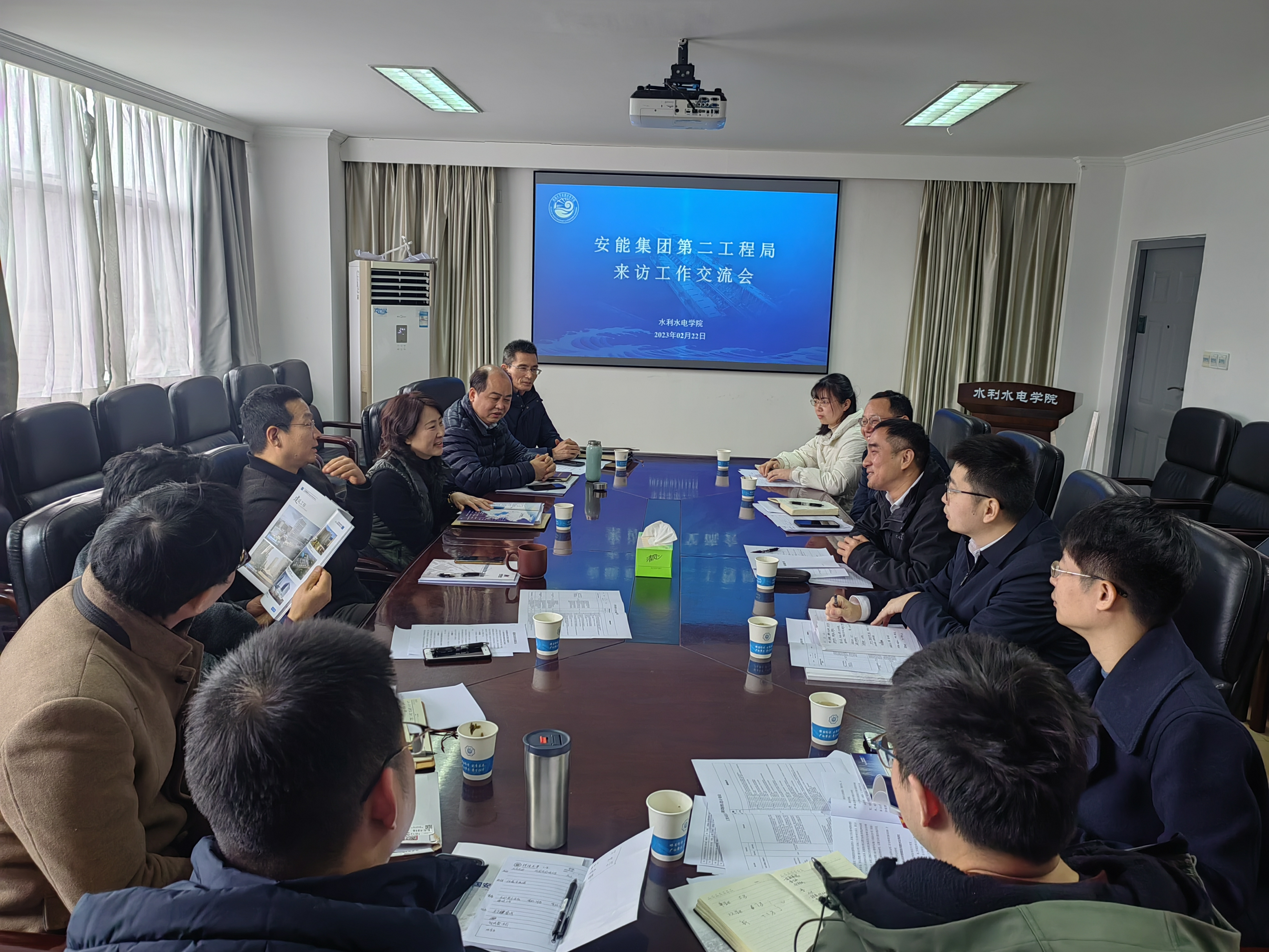 娄健书记对安能集团第二工程局一行来亚洲情色 开展合作交流表示欢迎,介绍了水电院近年来科研成果概况,并表示希望通过此次对接交流,双方能相互依托,通过设立实习基地等方式,进一步推动建立起长效合作模式,共同推进科技研发项目落地,强化产教融合和产学研合作。