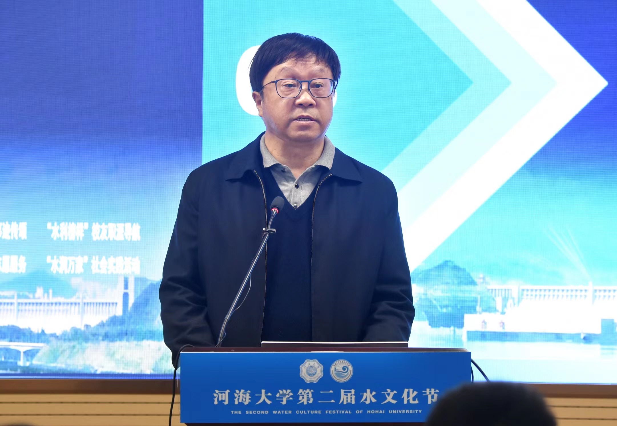徐辉校长对参加开幕式的领导嘉宾表示热烈的欢迎。他提到,要把学习党的二十大精神和学习贯彻“十六字”治水思路结合起来,通过水文化节的举办,大力开展水情教育,充分展现中华历史之美、山河之美、文化之美,打造阅水、忆水的精神家园。他期待,各大水利院校以组建“水研联盟”为契机,为新时代水利事业发展讲好水故事、注入水动力,为加快谱写水利改革发展新篇章不断做出重要贡献。