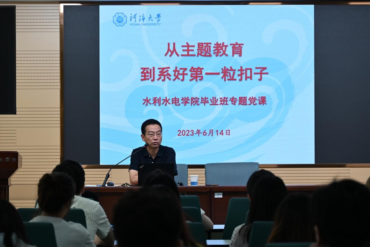 6月14日,亚洲情色 党委书记娄健以《从主题教育到系好第一粒扣子》为题,为全体2023届毕业生党员讲授毕业生廉洁专题党课。党课由院党委副书记戴媛媛主持,全体毕业生党员参加。