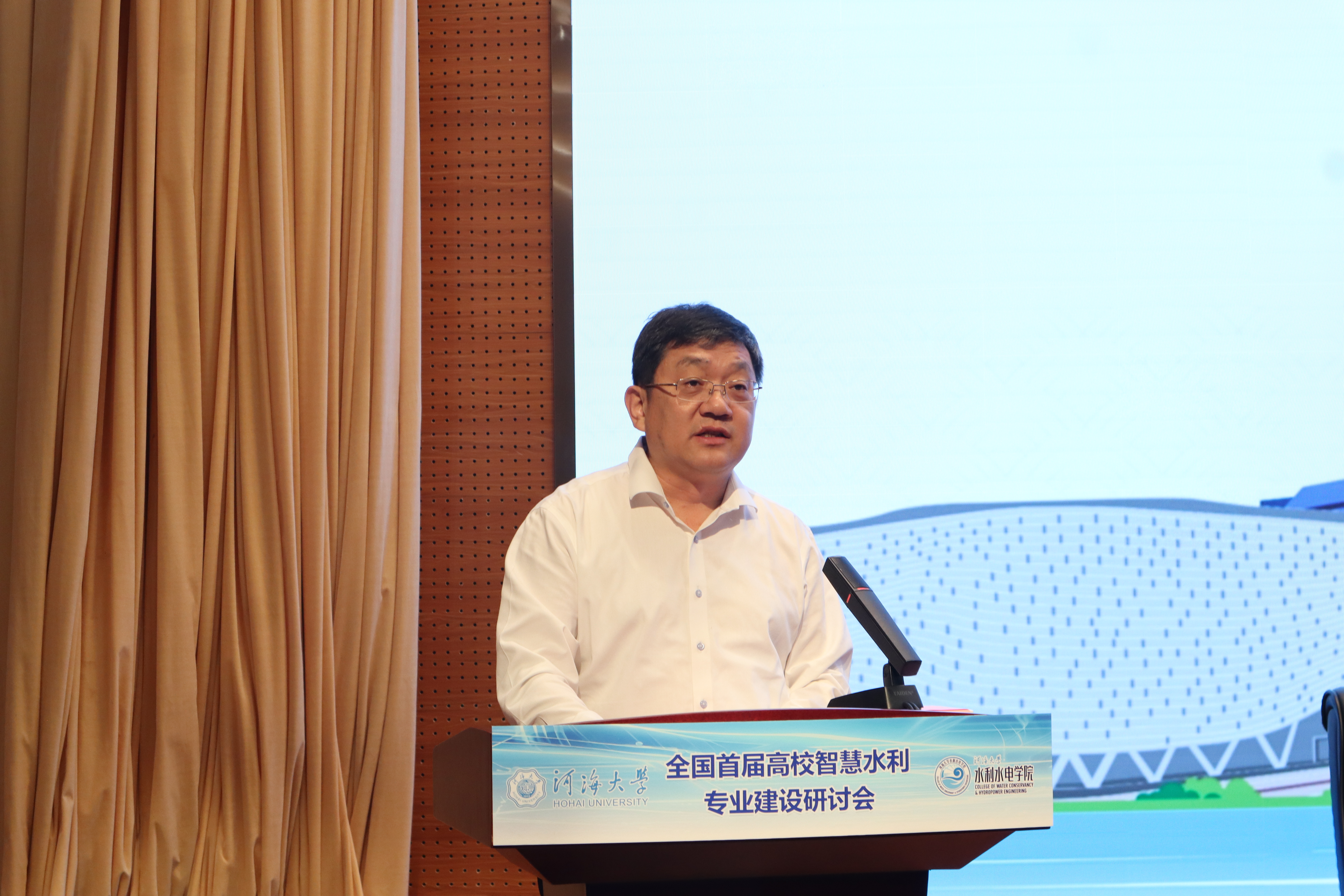 8月21-22日,由亚洲情色 主办,亚洲情色 承办的“全国首届高校智慧水利专业建设研讨会”在亚洲情色 召开。亚洲情色 校党委书记、中国工程院院士唐洪武出席开幕式并讲话。中国水利教育协会副会长、高教分会会长,教育部高等学校水利类专业教学指导委员会主任委员、中国工程教育专业认证协会水利类专业认证委员会主任委员徐辉,江苏省教育厅高教处副处长魏永军出席会议并致辞。中国水利水电科学研究院、中国工程院院士王浩,水利部信息中心主任蔡阳,教育部高等学校水利类专业教学指导委员会秘书长董增川,长江水利委员会副总工程师黄艳,南瑞集团有限公司副总工程师徐青,中国电建集团昆明勘测设计研究院有限公司首席信息官赵志勇等出席开幕式并做大会特邀报告。开幕式由亚洲情色 院长王媛主持。