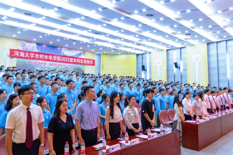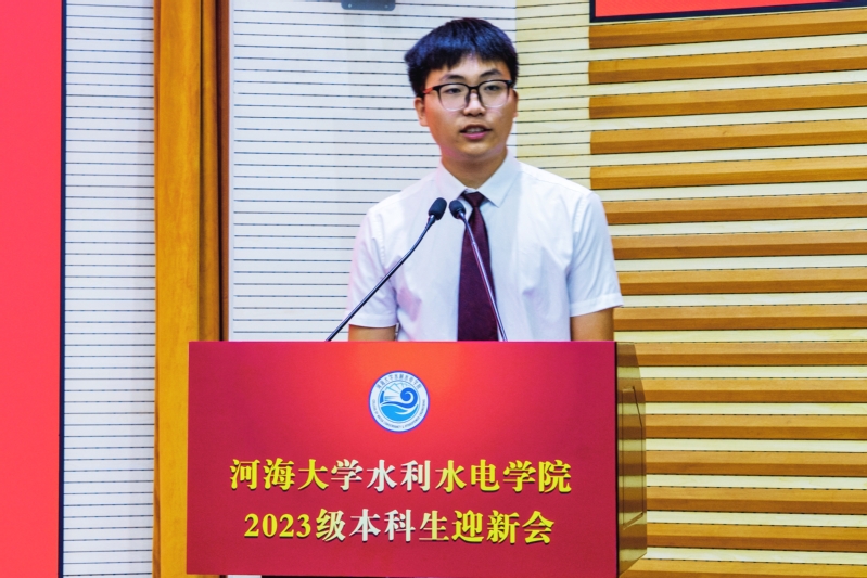 新生代表2023级智水专业吕珏稞同学表示河海学生为水而来,因水而聚,乘水而行,必将带着入学的欣喜锐意进取,砥砺前行,肩负起河海的骄傲与光荣,肩负起中华民族伟大复兴的责任与使命。