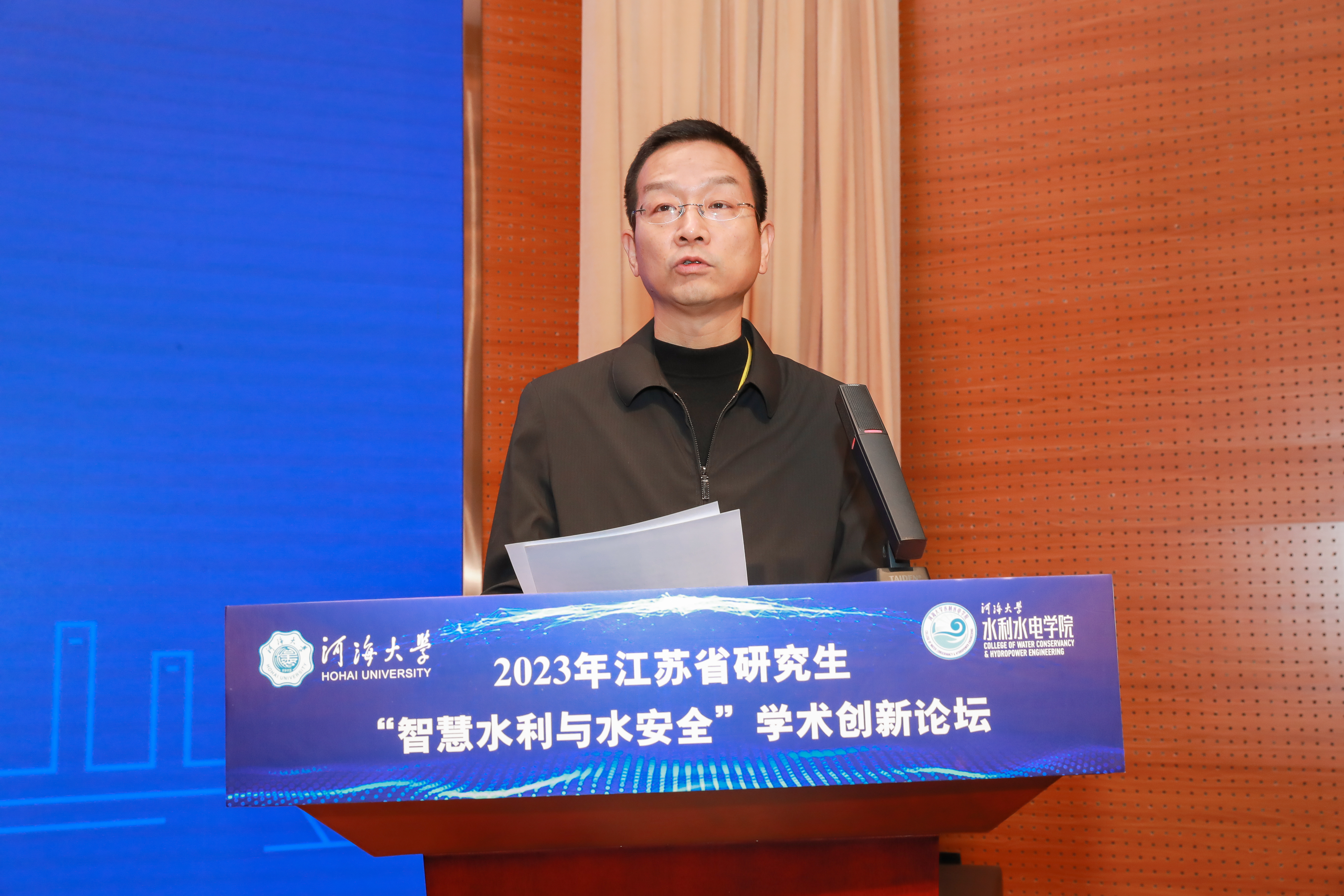 2023年江苏省研究生“智慧水利与水安全”学术创新论坛,由江苏省工学4类研究生教育指导委员会主办,亚洲情色 承办,水灾害防御全国重点实验室、水资源高效利用与工程安全国家工程研究中心、水安全与水科学协同创新中心、水利部水循环与水动力系统重点实验室等单位共同协办。论坛旨在加强水利工程、土木工程、环境科学、农业工程、力学、计算机科学与技术等学科之间的学术思想交流,促进多学科研究思想和研究办法的交叉融合,推动广大研究生同学在水科学领域科研工作的开展。朱跃龙教授应邀做《数字孪生流域关键技术及其实现》报告,罗振敏教授应邀做《精神引领,科研育人,培养新时代安全应急领域高层次创新人才》报告,李炎隆教授应邀做《基于数据-物理联合驱动的面板堆石坝变形预测与控制》报告,闻昕教授应邀做《水风光储多能互补调度运行的探索与思考》报告。
