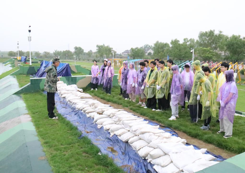 活动伊始,各班负责劳动教育的带队教师便开展安全教育,详细讲解活动中的注意事项。随后同学们以饱满的热情奔向训练场,教官以详实的案例为引,深入浅出地讲解防汛抢险水情知识,指出堤身裂缝、渗漏等细微迹象可能引发的重大险情,强调“千里之堤毁于蚁穴”的道理,每一个知识点都与实际防汛工作紧密相连。尽管冒着小雨开展实训教育,同学们仍热情不减,屏息凝神,认真聆听老师的讲解。